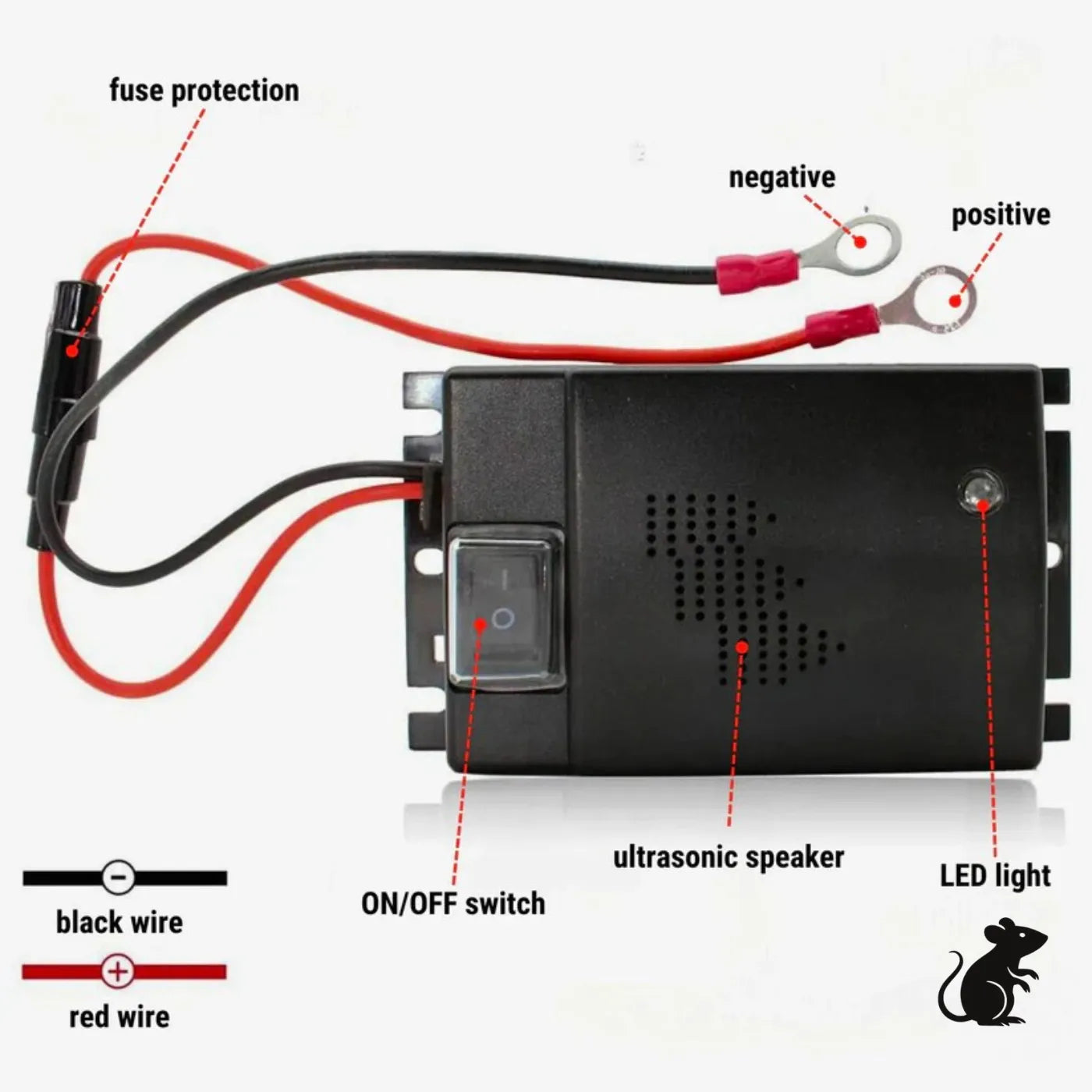 Rodent Fortress Auto is a powerful ultrasonic rodent deterrent designed to protect your vehicle from hidden damage caused by rats and mice. These small pests can do serious harm - chewing wires, nesting under the hood, and causing unexpected breakdowns. This compact device creates an invisible barrier to keep rodents out-safely and effectively.