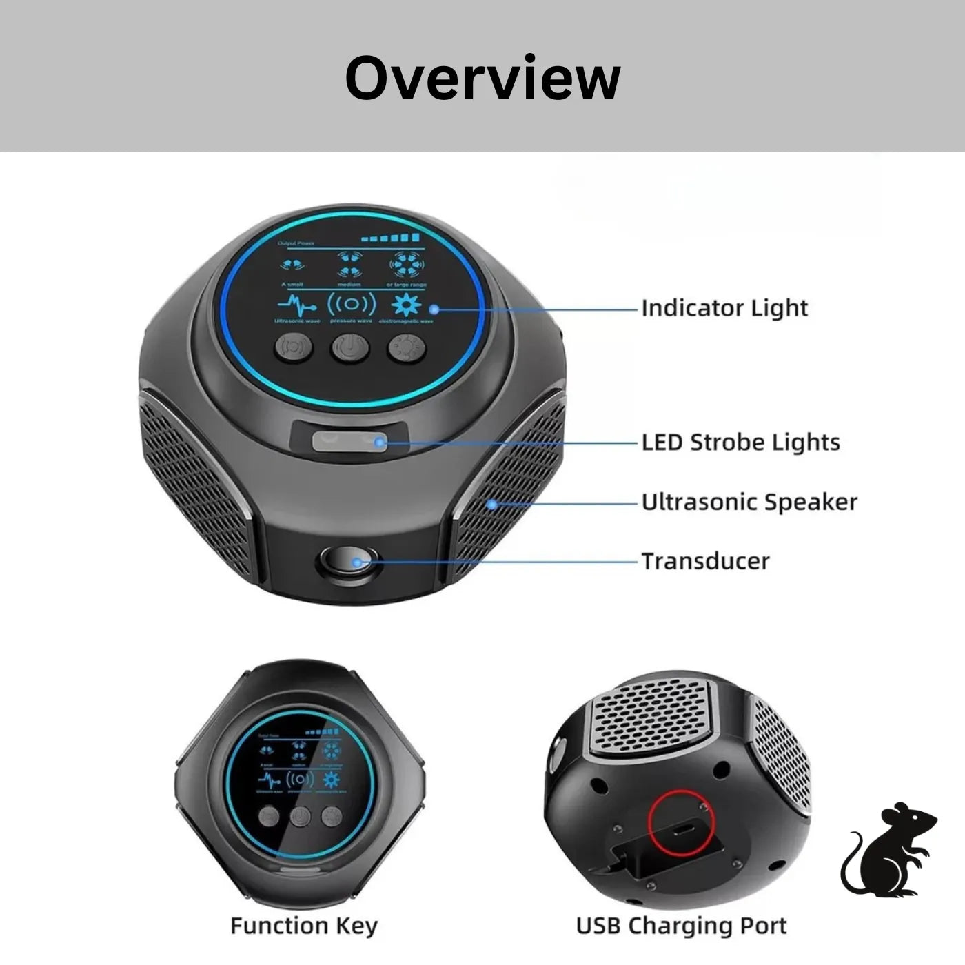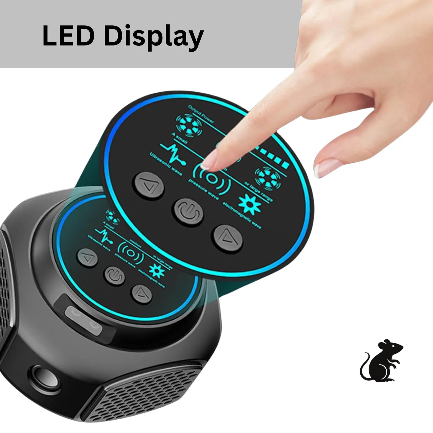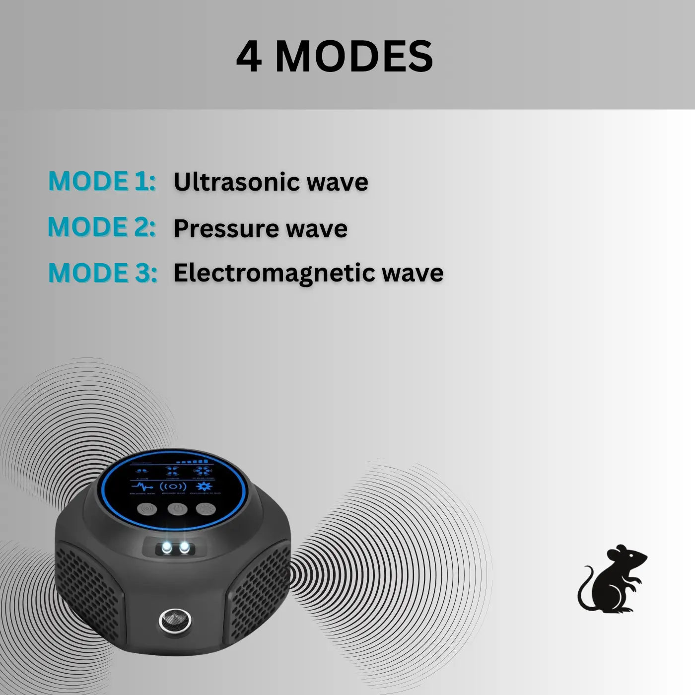 - Mode 1: Ultrasonic Wave – Emits high-frequency sound that repels rodents.
